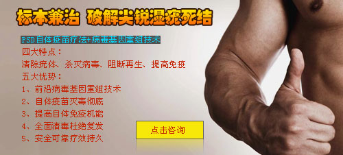 针对上述症状南通广济门诊开展的“PSD自体疫苗疗法+病毒基因重组技术”是当前临床治疗尖锐湿疣最理想的国际前沿技术,目前国内拥有 此项技术的医疗机构为数并不多,由此也使尖锐湿疣的治疗成为南通广济门诊的重点特色诊疗项目。这一技术可有效抑制病毒基因DNA的 复制和再生,具有疗程短,见效快,不易复发等优点。自临床应用以来,受到医学界及广大患者的一致好评,在抗原刺激下,免疫活性细胞 被致敏,利用其靶向游走特性及免疫活性,深入病灶局部,有效杀灭细胞内病毒和组织深层的游离病毒,从而达到快速治疗的效果。